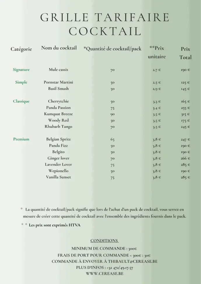 - Grille tarifaire détaillée : Des prix clairs et transparents pour tous nos produits, vous permettant de composer vos commandes en toute simplicité.
