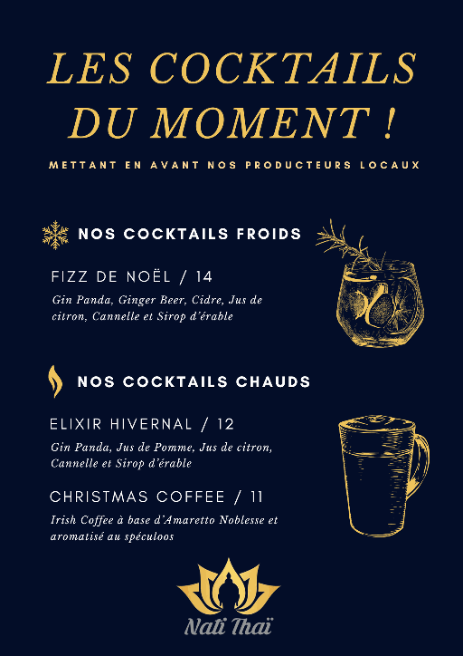 Sélections de cocktails hivernaux mettant en avant les produits locaux sélectionnés.